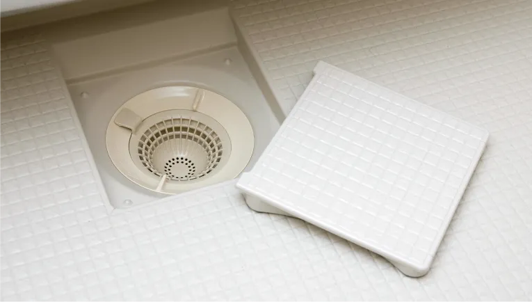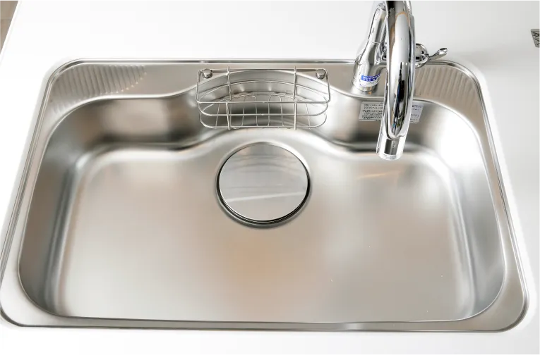 排水口の金具をなくし、水はけの良い形状なので、お手入れがしやすく、汚れも簡単に拭き取れます。