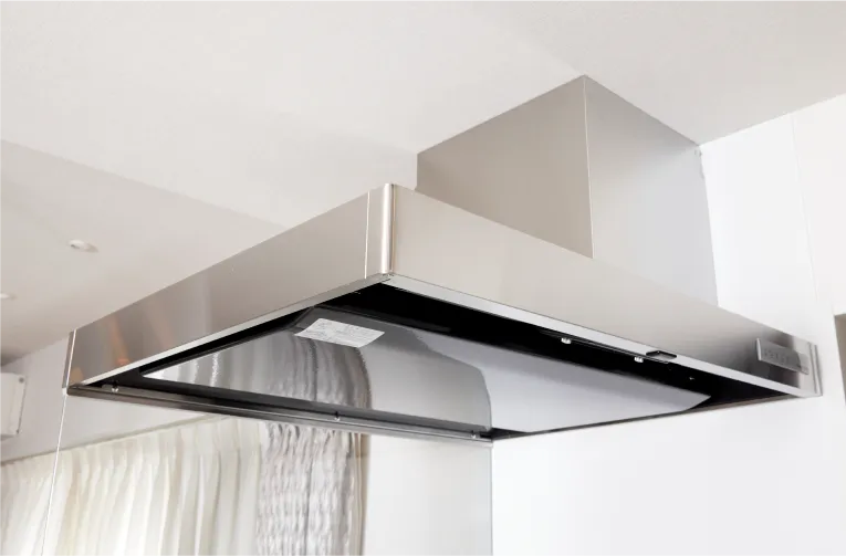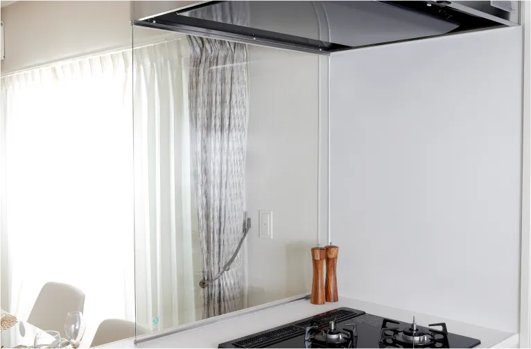 整流板が吸引力を高めるレンジフードはスマートなデザインも魅力。高品位ホーローの整流板は油汚れも簡単に拭き取れます。