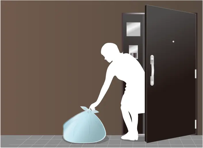 家庭ゴミを指定時間に玄関前に置いておけば、