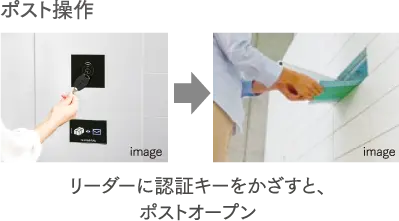 建物用のハンズフリーキーで「ポスタク」の操作が可能。1本のキーを持ち歩くだけでOKです。