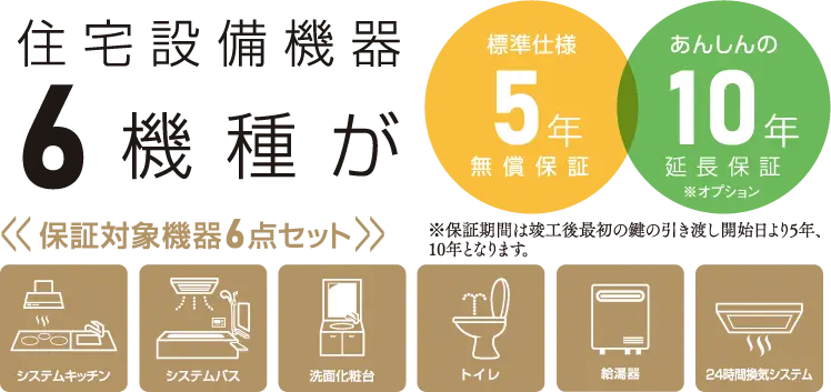 住宅設備機器の5年間無償保証を標準仕様としています。