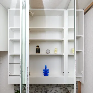 身支度がはかどる便利な三面鏡を採用。鏡内の収納部分には、よく使う小物やパーソナルケア用品などを収納できるのでとても便利です。