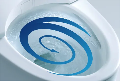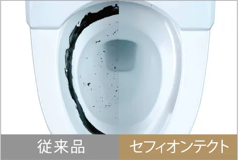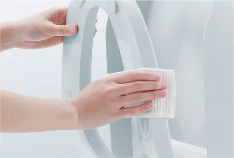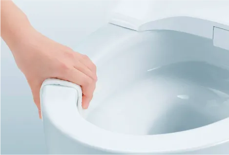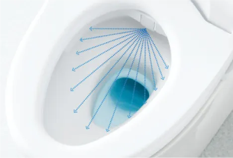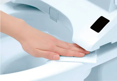 便座に座ると、便器ボウル面に自動でミストを吹きつけ、便器表面に広がり、汚れを付きにくく落ちやすくします。